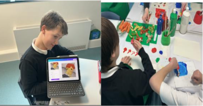 History lessons bloomed with Tudor Rose designs, while Science explored culture and colour through Day of the Dead–inspired outcomes. In Food Technology, creativity was deliciously on display with fruit faces, and students also experimented with printmaking techniques.